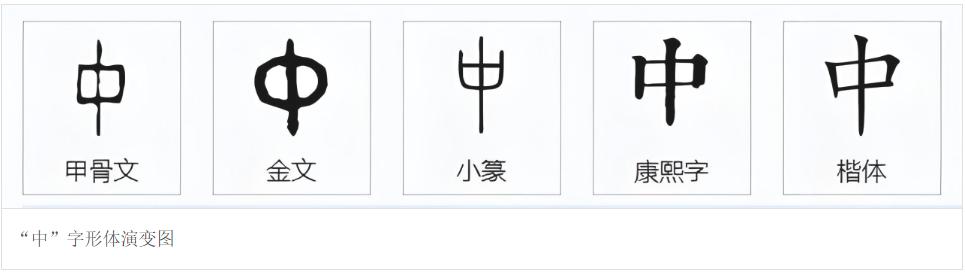 The Chinese character "中" has remained largely unchanged from oracle bone script to the present day. Even though some versions feature a flag, it does not affect the character's essence. The mouth is positioned in the center of the nine-square grid, representing the earth element. The vertical stroke in the middle connects the top and bottom, symbolizing the harmonious interaction of water and fire.