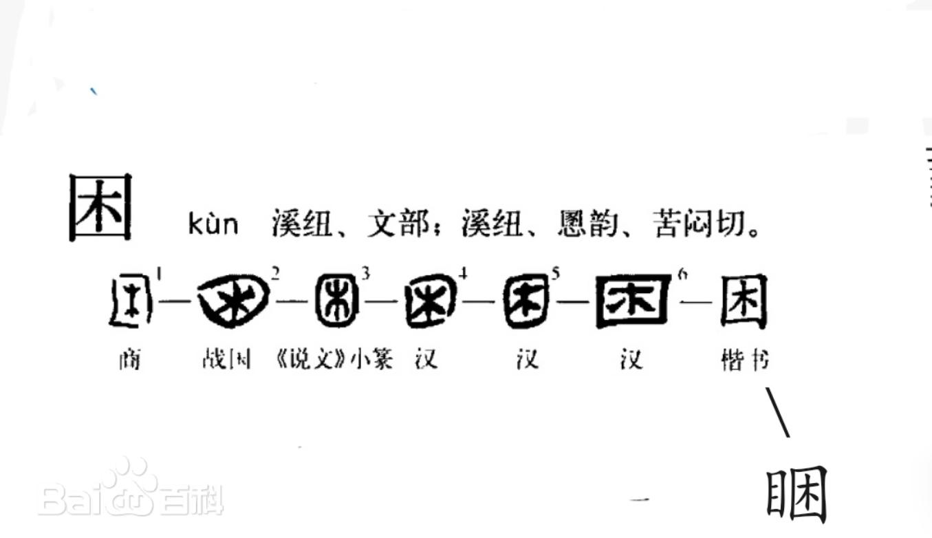 The character for "困" has no passage in any direction, east, south, west, north, or all around.